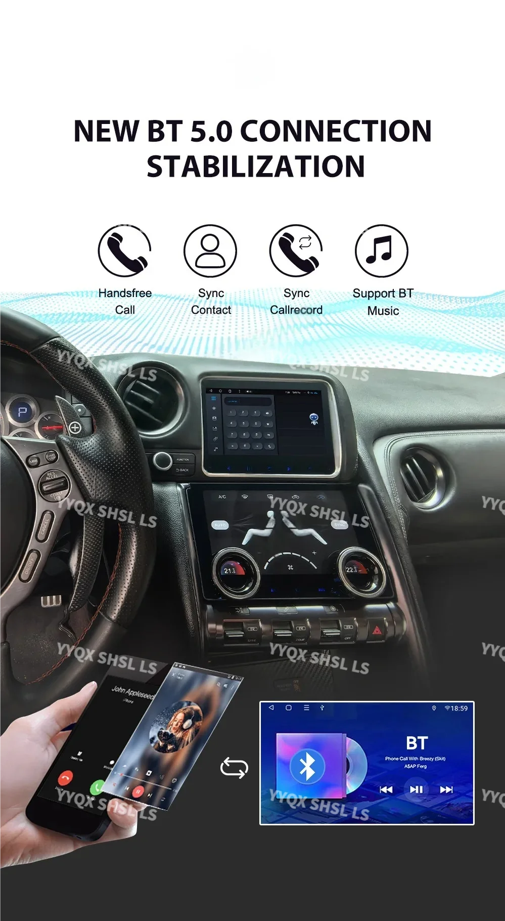 7.Bluetooth Supports All Brands Cellphones,Phonebook Input,Music Playback,Supports Name Search By A-Z