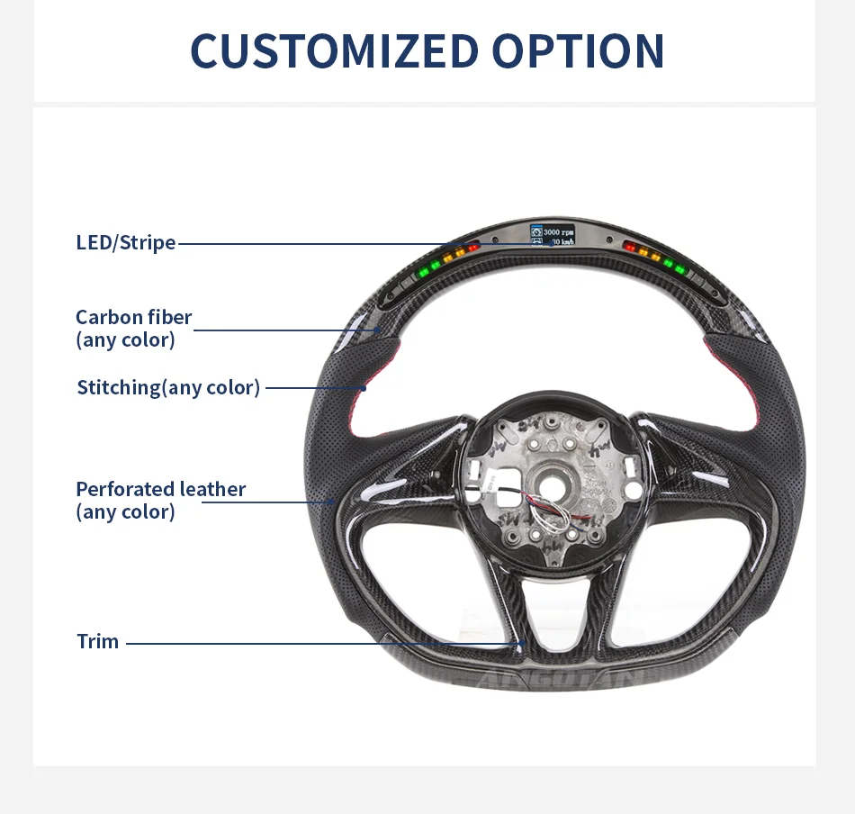 LuxRide™LED Carbon Fiber Steering Wheel For McLaren 720S 600LT 540C 12C 2017-2021 Racing Wheel With Trim Cover 720s Steering Wheel